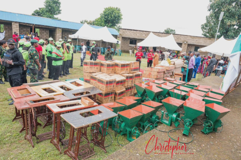 Items distributed included grinding machines, sewing machines, wrappers, wheelchairs, cash gifts, and food items as a way of supporting the women to build sustainable livelihoods.